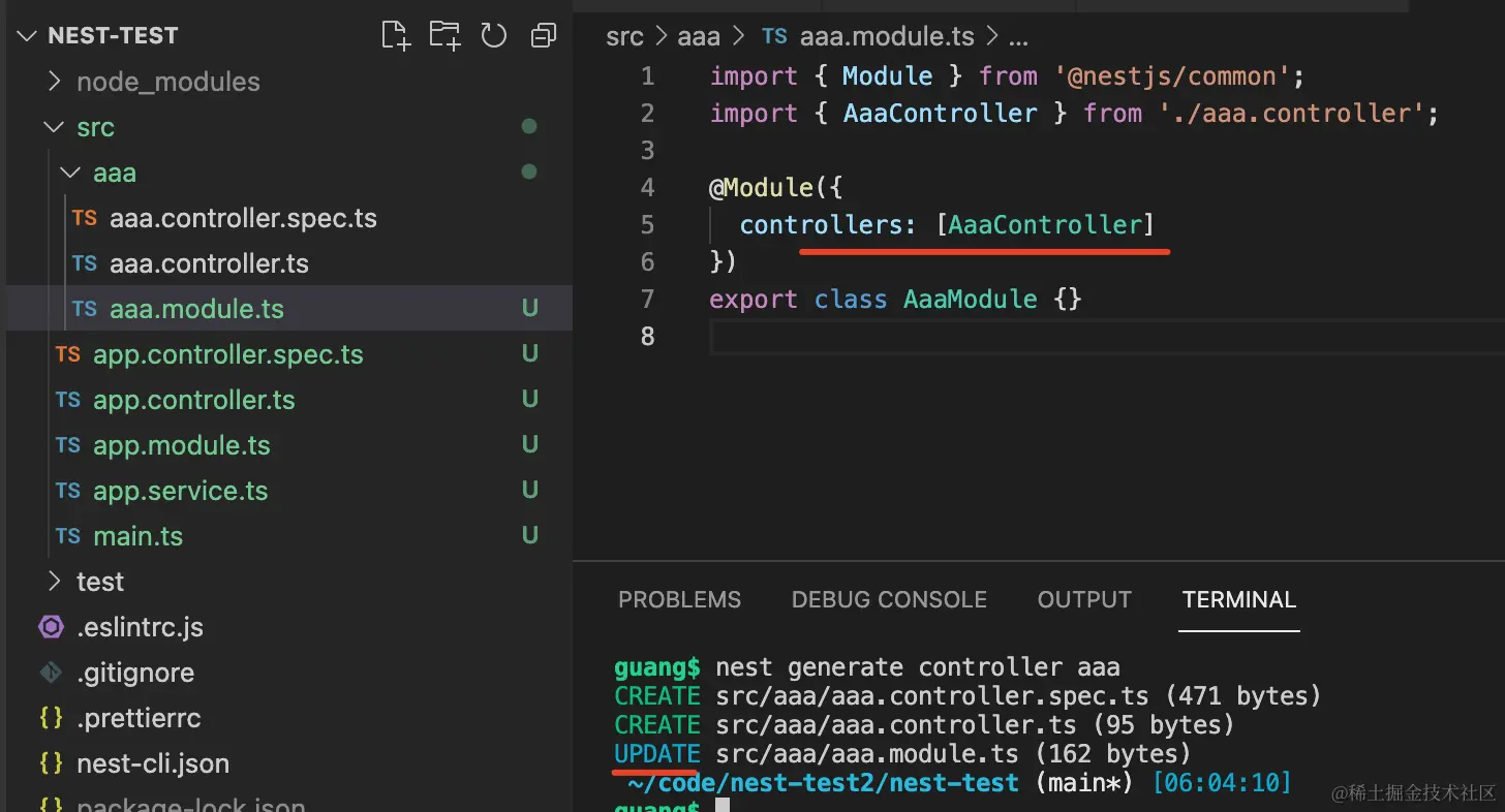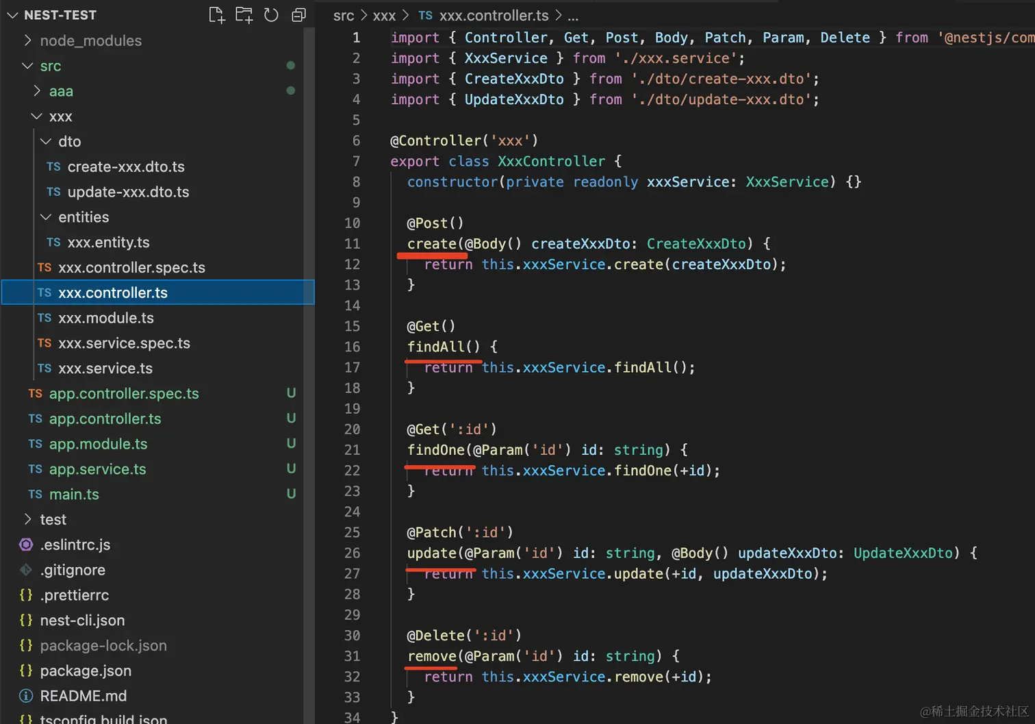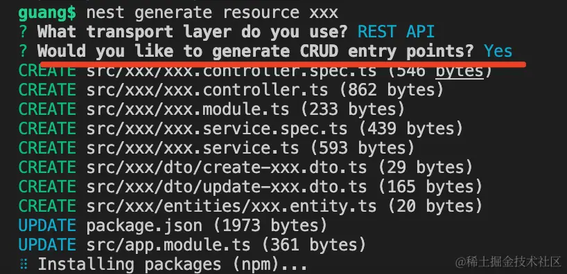 这就是 nest cli 提供的快速生成各种代码的能力,是不是还挺方便的?