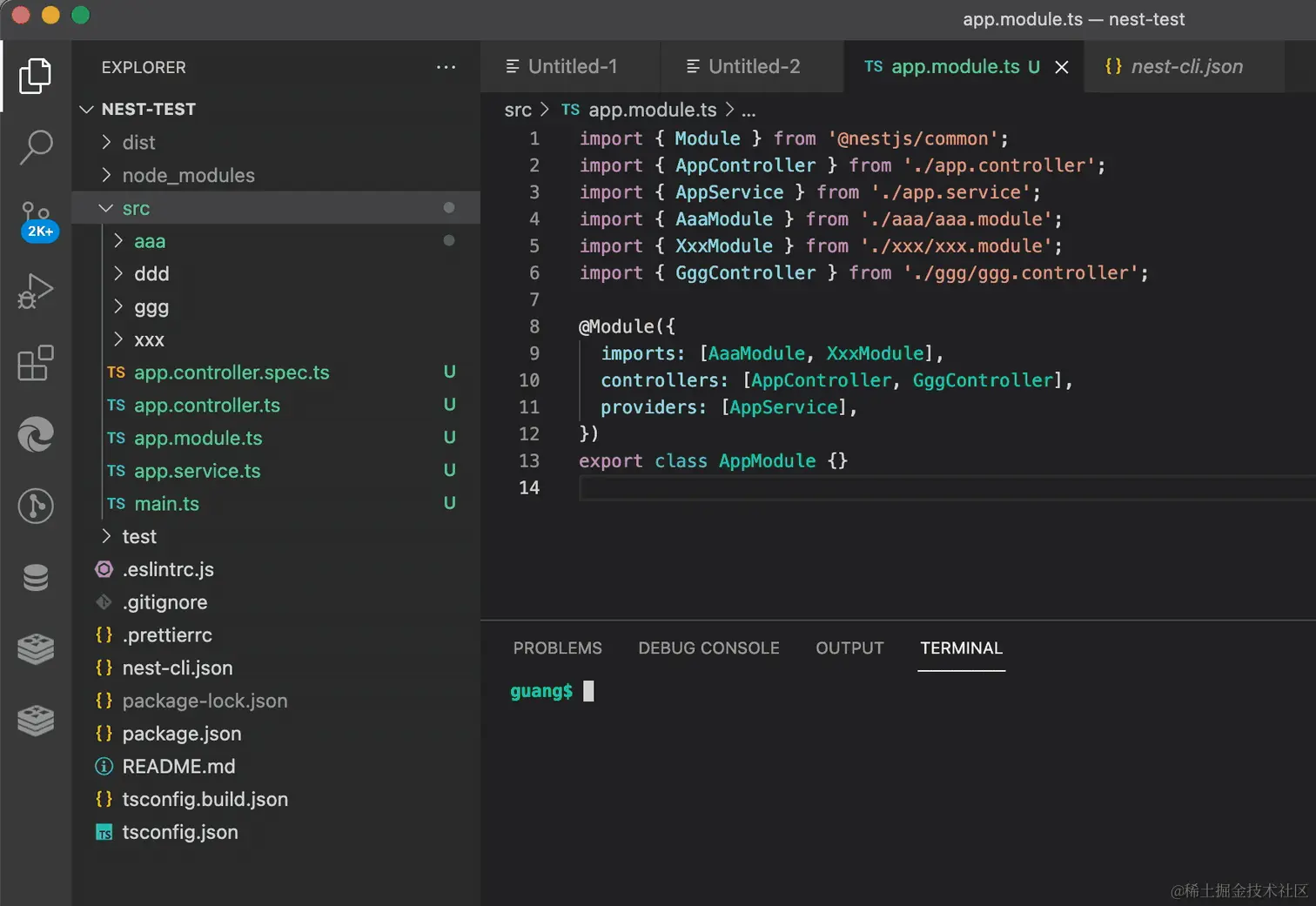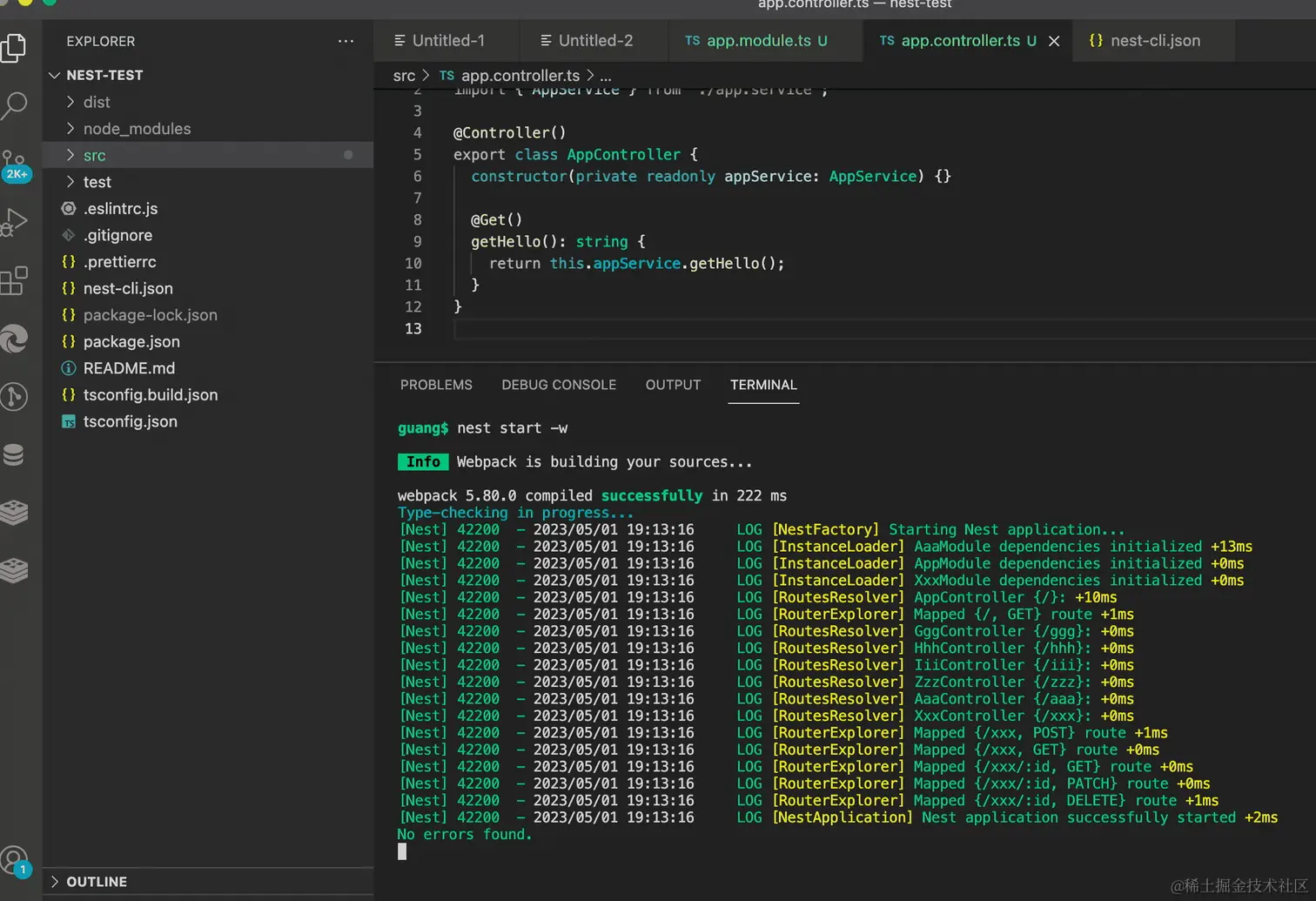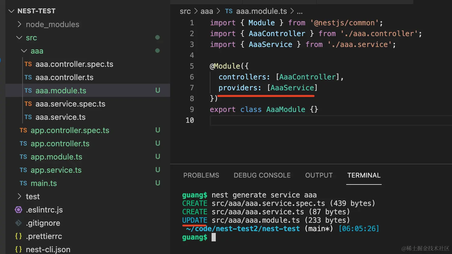 这就是 nest cli 提供的快速生成各种代码的能力,是不是还挺方便的?