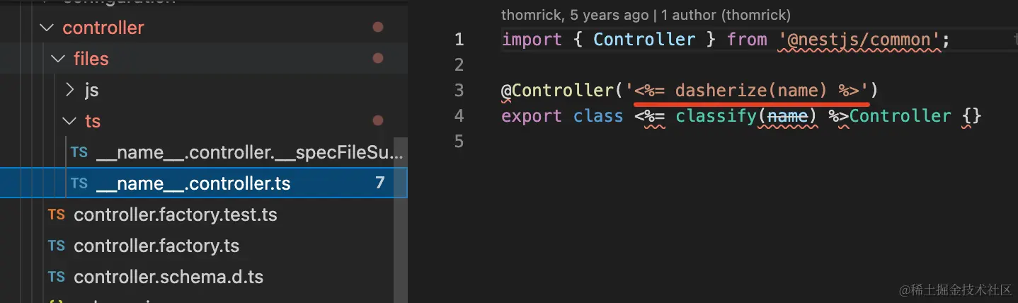 你可以在 @nestjs/schematics 里看到这些代码模版的定义: