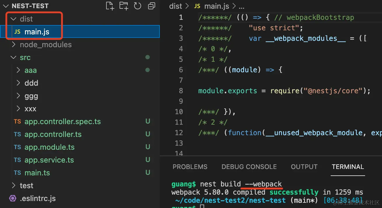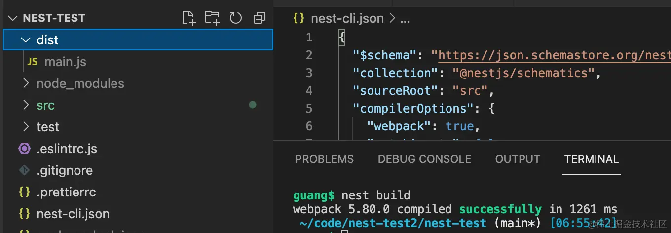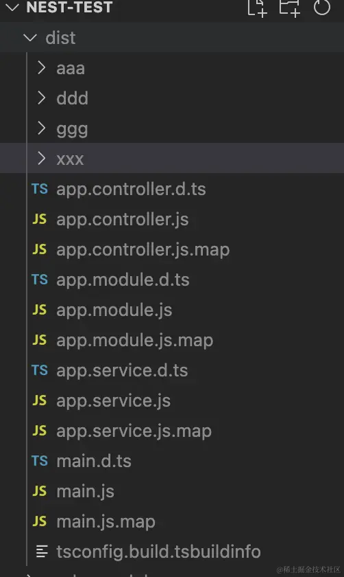 执行 nest build,会在 dist 目录下生成编译后的代码。