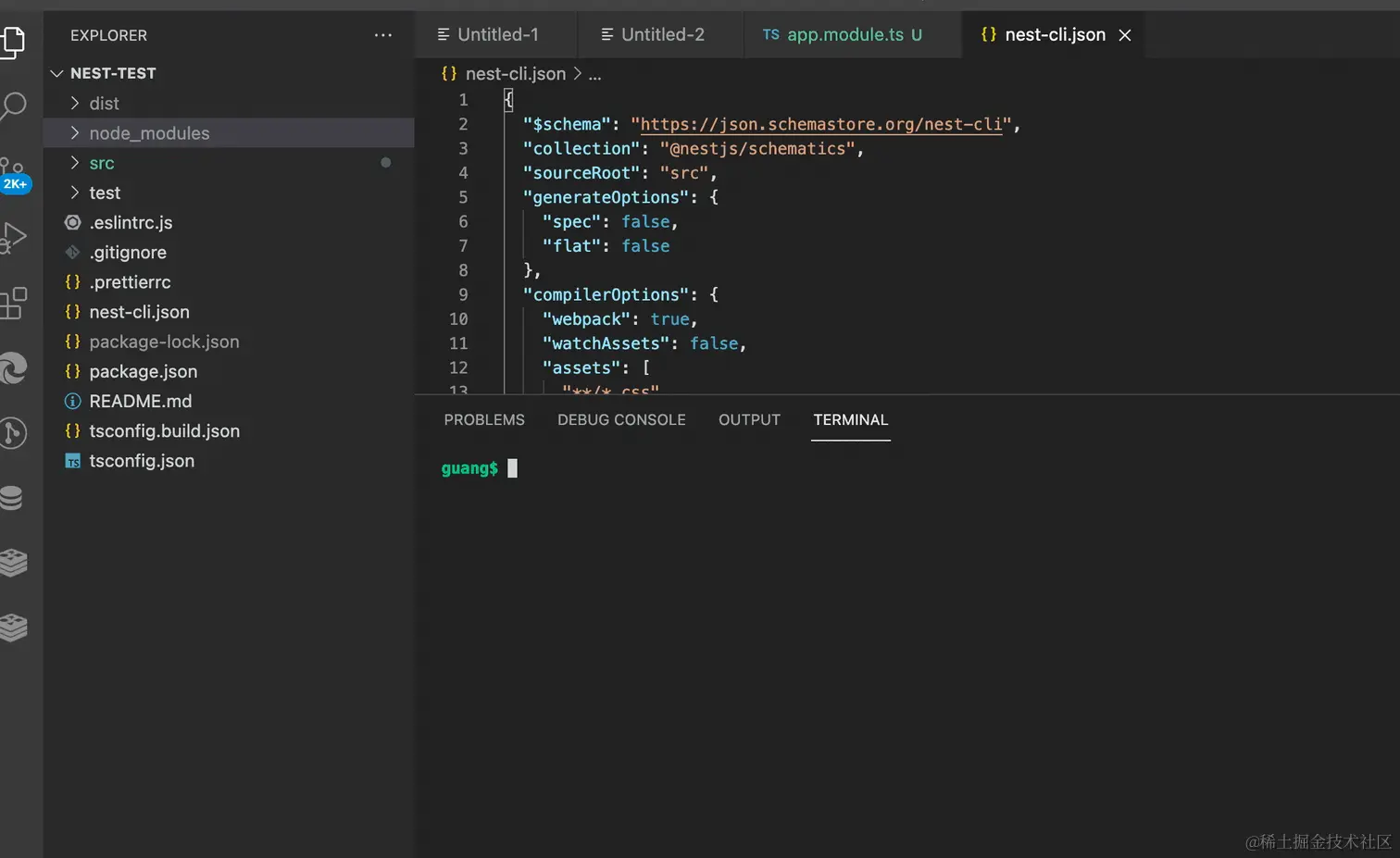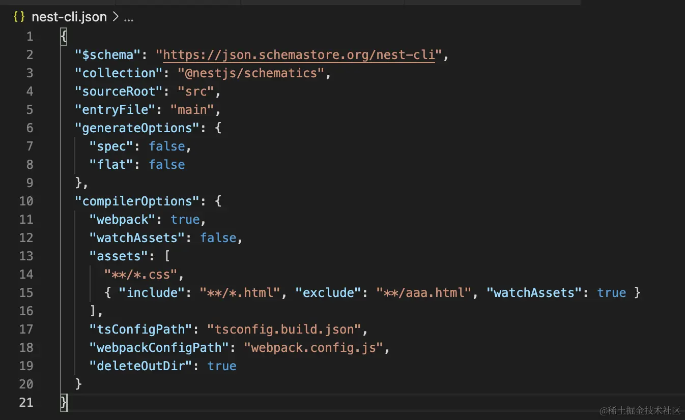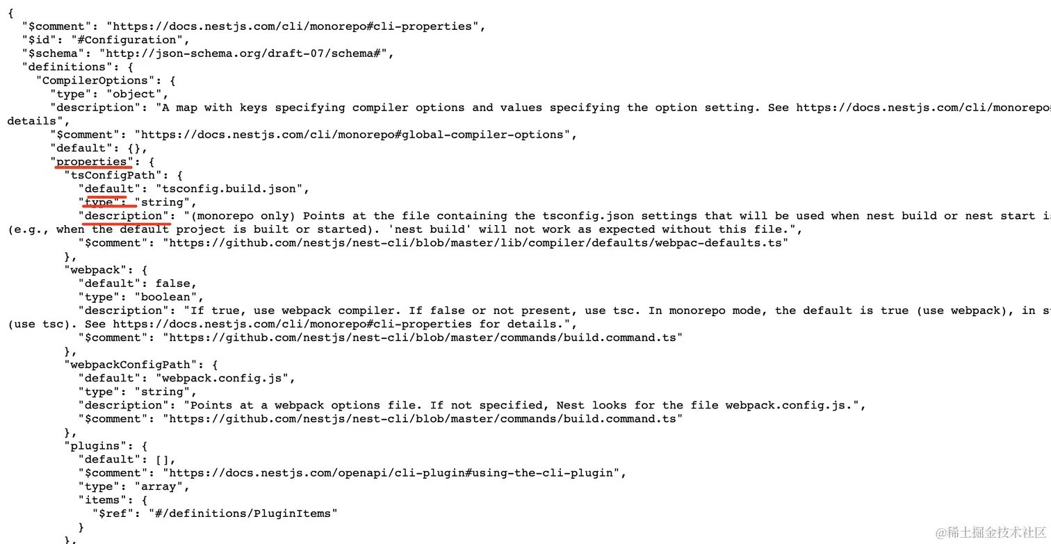 如果想全面了解 nest-cli.json 都有啥属性,可以看看这个 schema 定义。